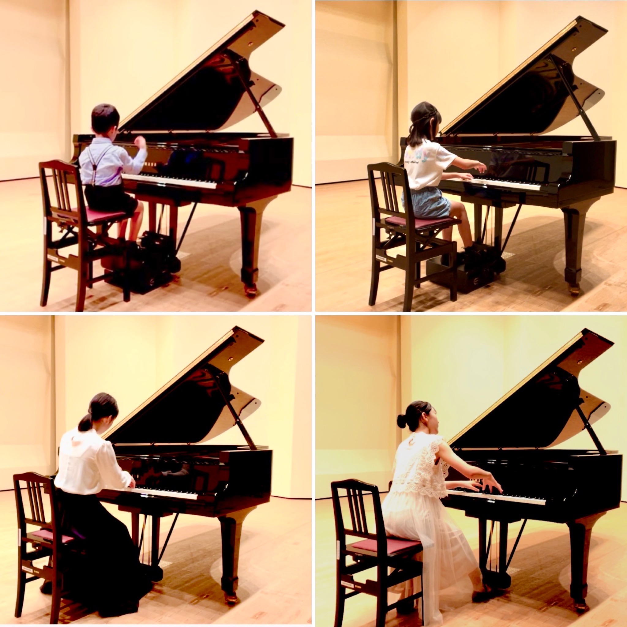 入会間もないお二人は、4月の発表会で大きなピアノを弾いて以来、ホールでピアノを弾く事がとても楽しいようです。響きが増えると、いつも聴こえてこない凸凹がよ〜く聴こえてきますよね。ここからも、自分の音をよ〜く聴いて、沢山考えて、引き続き”レガートの感覚”を磨いていきましょう。大きい子からみると、小さな子達の”緊張なんてどこにあるの?”という、自由でのびのびとした演奏は本当に羨ましいかぎりです。これからも人前で弾く機会を沢山持って、その”伸び伸びさ”いつまでも持ち続けてください。